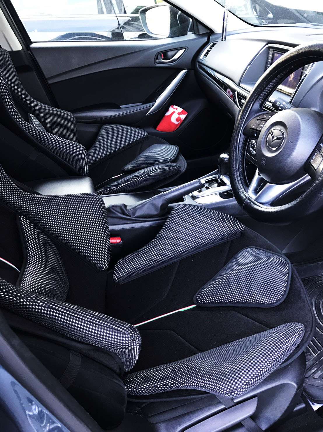 アテンザにて装着 with GT 2021/06/30 マツダ アテンザ にてGTを装着 マツダ アテンザに アルティメットGTを装着しました。 装着イメージは以下よりどうぞ。 ブラック+カーボンルック素材で精悍なインテリアに ホールド性の大幅アップのほか、車内のドレスアップにも最適。 自分の体型に合わせてパーツを好きな位置に配置できるため、 自分だけの快適な着座環境を構築できます。 シートにセットするだけで印象アップ効果大 純正シートにそのまま被せるだけの簡単設置のお手軽カスタム。 日々の通勤や買い物はもちろん、長距離ドライブにこそ力を発揮します。 ぜひお試しを。 GTシリーズ 商品開発 使い方